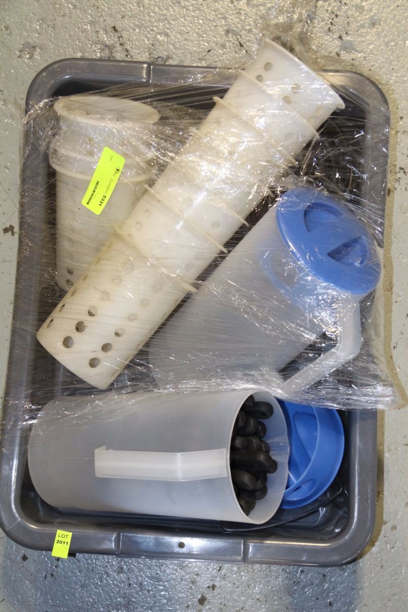 BUS PAN WITH CUTLERY TRAYS, KNIVES, JUGS, ETC.