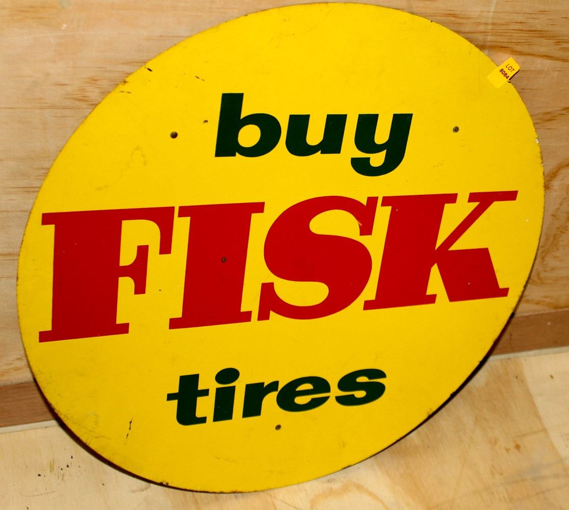 "BUY FISK TIRES" VINTAGE ROUND PORCELAIN ON METAL SIGN
