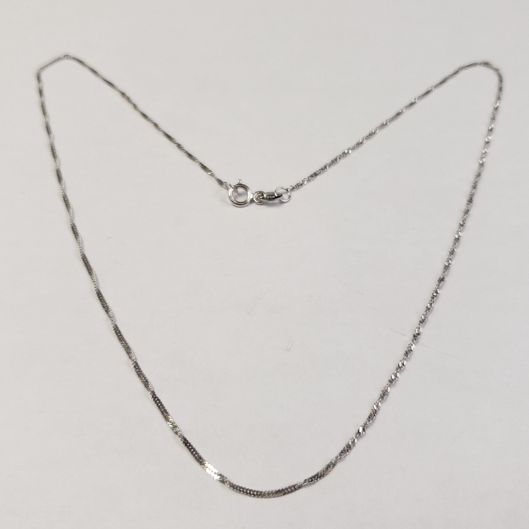 14K WHITE GOLD 1.03G 15" NECKLACE**ALL ITEMS MUST BE REMOVED BY 5PM MONDAY, SEPTEMBER 17, 2022. ALL REMAINING ITEMS WILL BE SUBJECT TO A $6.00 PER DAY STORAGE CHARGE. ANY ITEMS REMAINING AFTER MONDAY, SEPTEMBER 17, 2022 WILL BE CONSIDERED FORFEITED. NO REFUNDS WILL BE ISSUED FOR FORFEITED ITEMS. TO SCHEDULE A PICK UP APPOINTMENT CLICK HERE