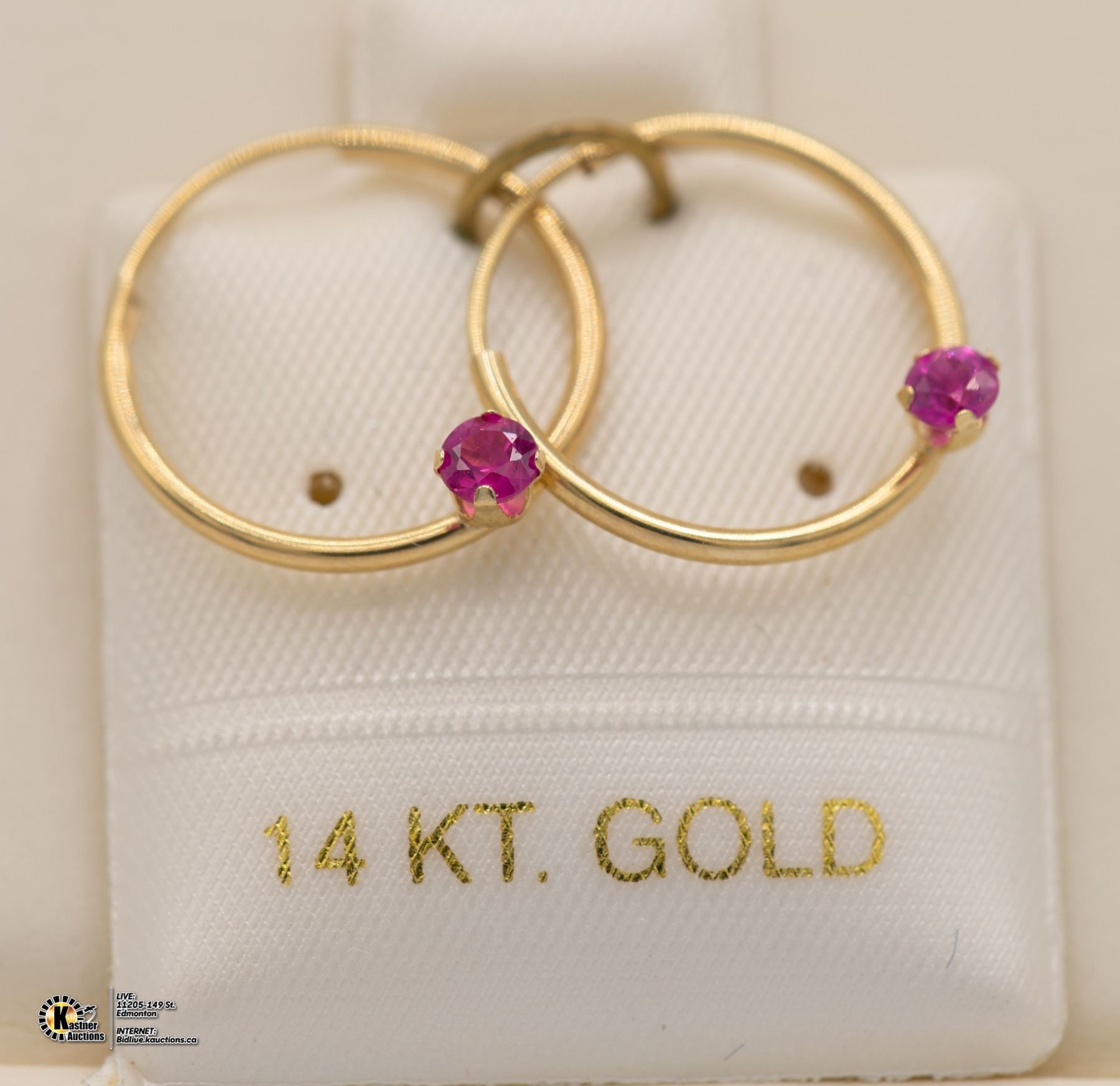 14K YELLOW GOLD RUBY HOOP(0.18CT) EARRINGS, MADE IN CANADA, SUGGESTED RETAIL VALUE $300**ALL ITEMS MUST BE REMOVED BY 5PM FRIDAY, SEPTEMBER 16ND, 2022. ALL REMAINING ITEMS WILL BE SUBJECT TO A $6.00 PER DAY STORAGE CHARGE. ANY ITEMS REMAINING AFTER FRIDAY, SEPTEMBER 16, 2022 WILL BE CONSIDERED FORFEITED. NO REFUNDS WILL BE ISSUED FOR FORFEITED ITEMS.** TO SCHEDULE A PICK UP APPOINTMENT. CLICK HERE