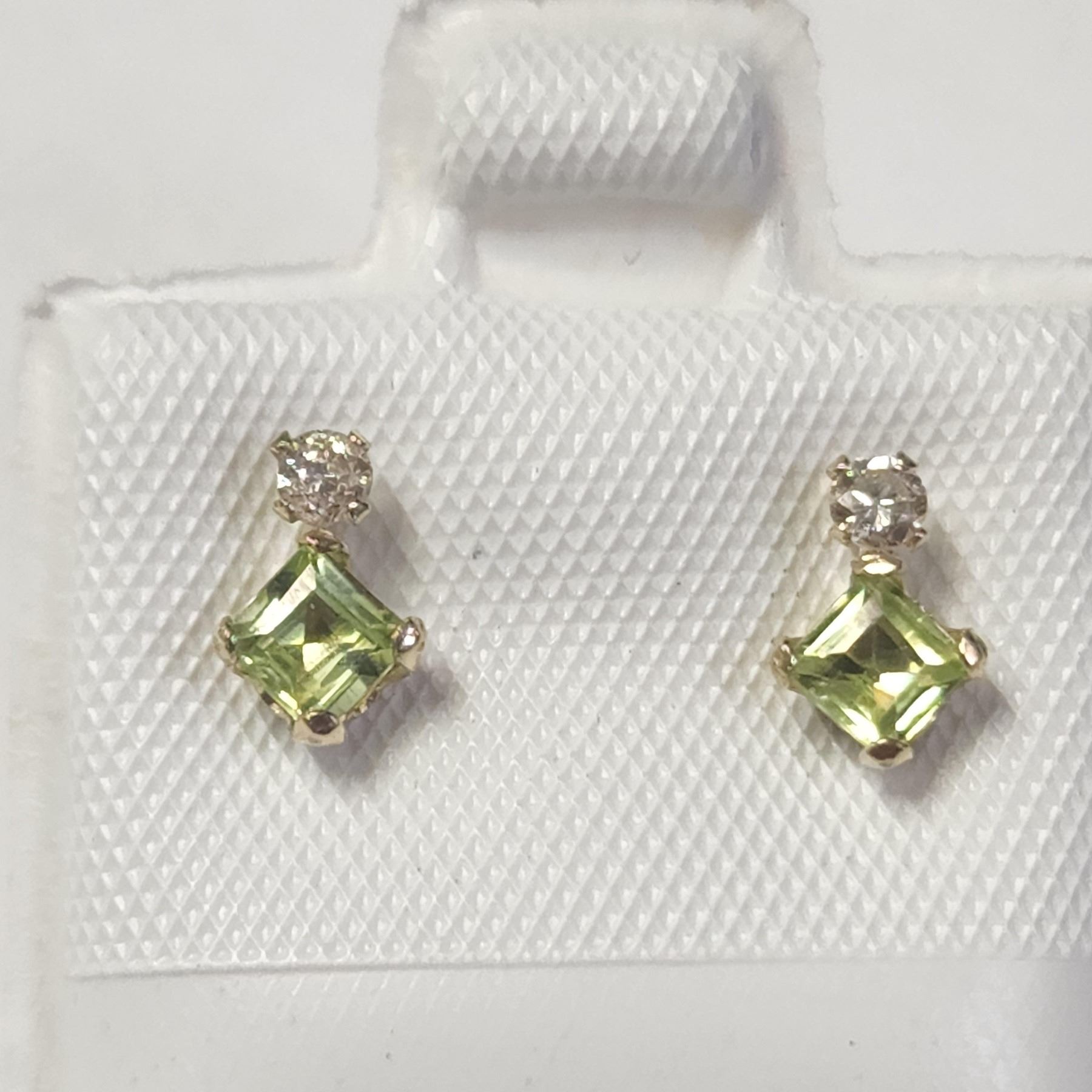 10K YELLOW GOLD PERIDOT (0.4CT) DIAMOND (0.06CT) EARRINGS. MADE IN CANADA