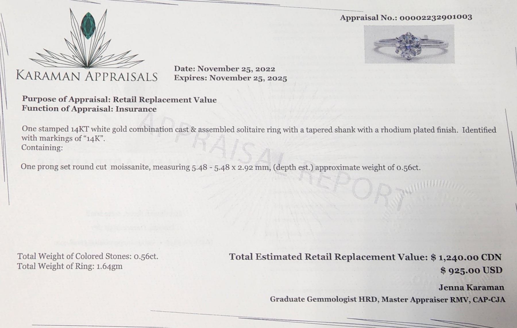 14K WHITE GOLD WHITE MOISSANITE, SIZE 6, WEIGHT 1.64G), MADE IN CANADA **ALL ITEMS MUST BE REMOVED BY 5PM SATURDAY, MAY 6TH 2023. ALL REMAINING ITEMS WILL BE SUBJECT TO A $6.00 PER DAY STORAGE CHARGE. ANY ITEMS REMAINING AFTER MONDAY, MAY 22ND, 2023 WILL BE CONSIDERED FORFEITED. NO REFUNDS WILL BE ISSUED FOR FORFEITED ITEMS. TO SCHEDULE A PICK UP APPOINTMENT CLICK HERE