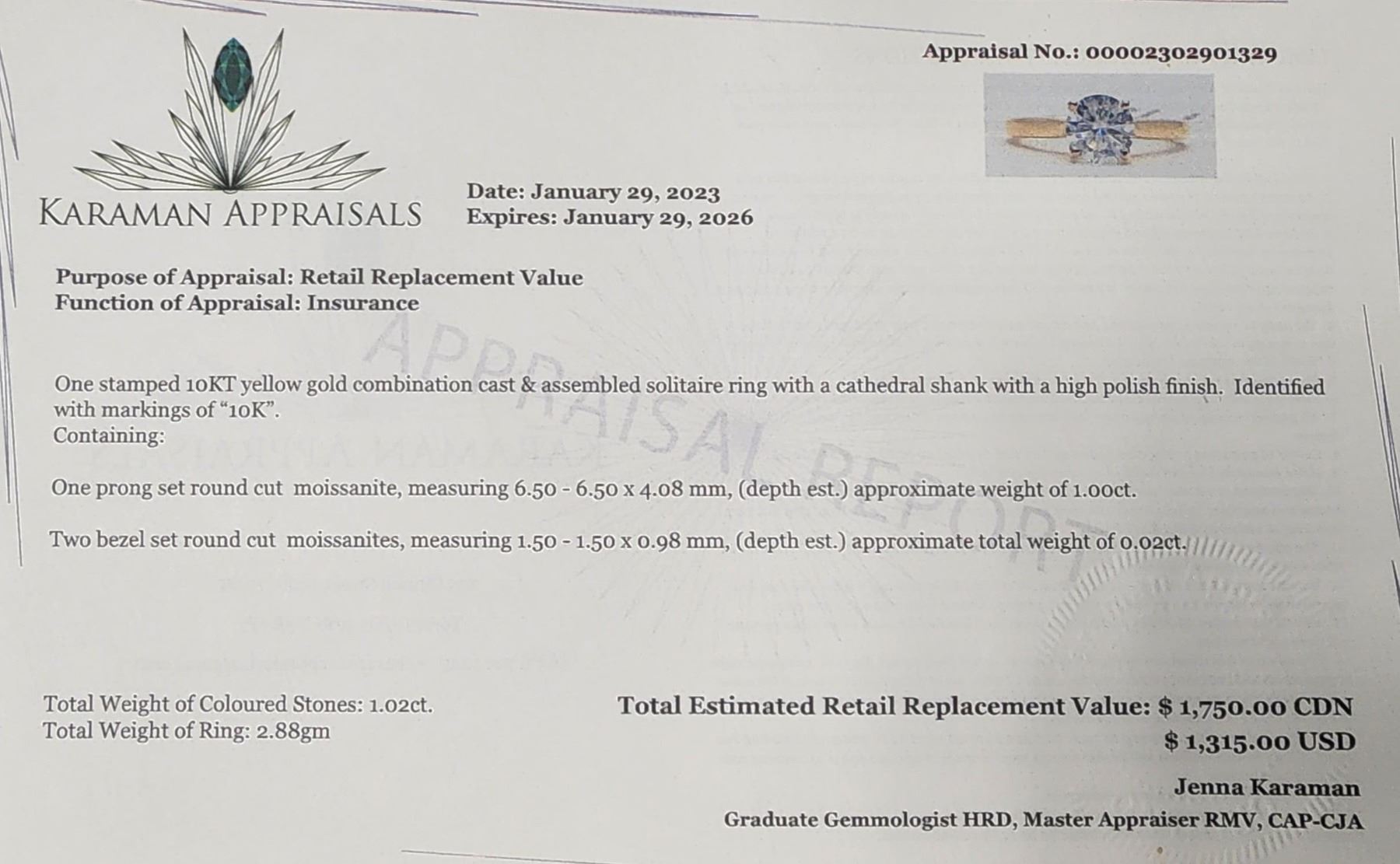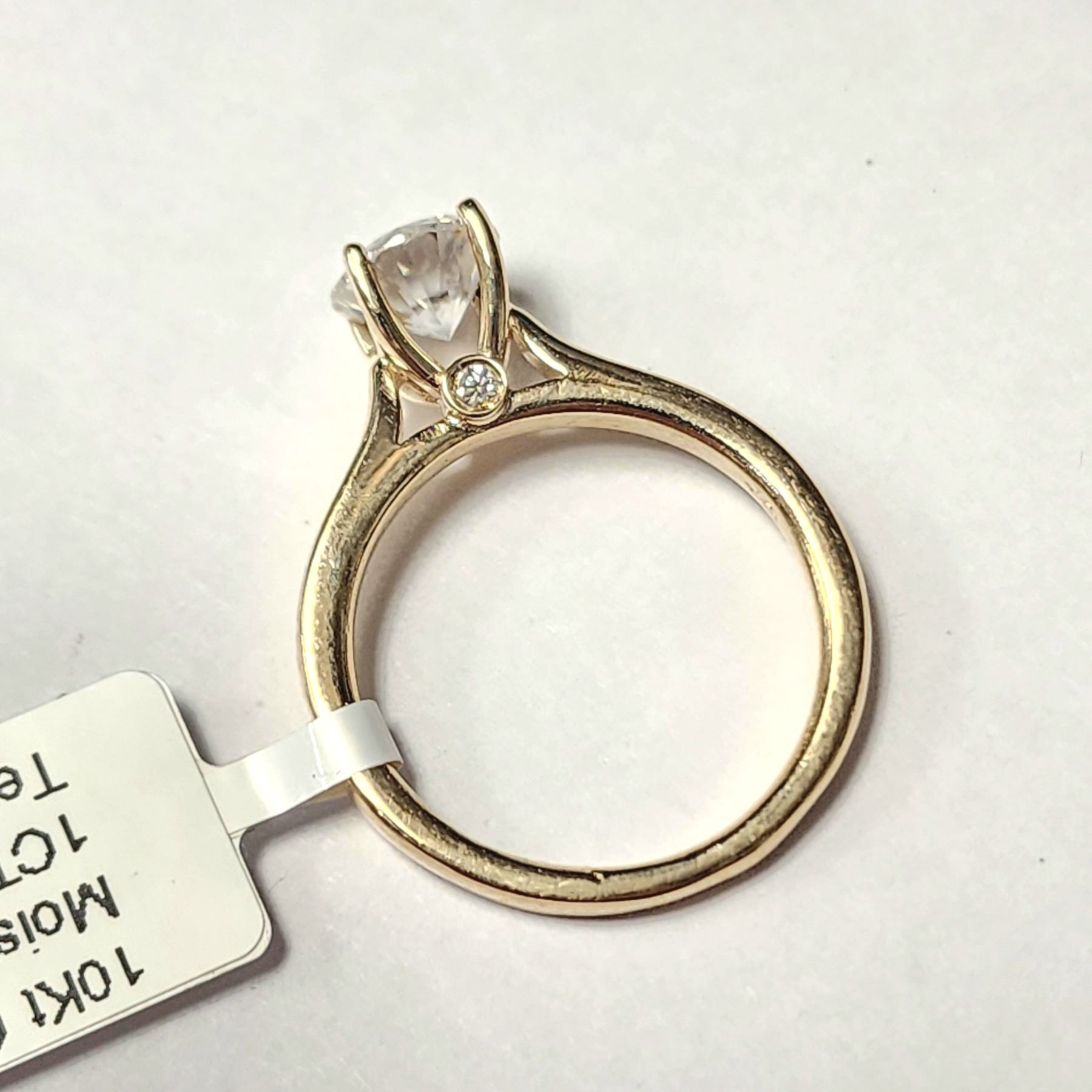 10K YELLOW GOLD WHITE MOISSANITE (1CT) RING SIZE 5.25, WEIGHT 2.88G, MADE IN CANADA, APPRAISED RETAIL $1750 **ALL ITEMS MUST BE REMOVED BY 5PM SATURDAY, JULY 29TH 2023. ALL REMAINING ITEMS WILL BE SUBJECT TO A $6.00 PER DAY STORAGE CHARGE. ANY ITEMS REMAINING AFTER MONDAY, AUGUST 14TH, 2023 WILL BE CONSIDERED FORFEITED. NO REFUNDS WILL BE ISSUED FOR FORFEITED ITEMS. TO SCHEDULE A PICK UP APPOINTMENT CLICK HERE