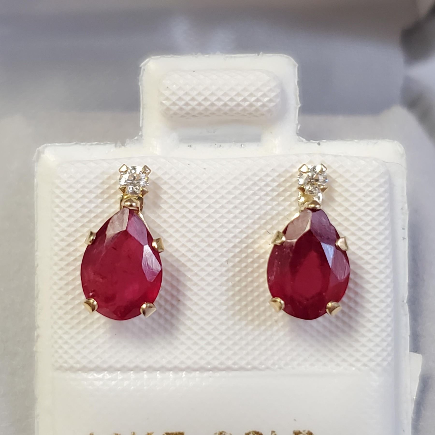 10K YELLOW GOLD RUBY(1.8CT) MOISSANITE(0.05CT) EARRINGS, MADE IN CANADA