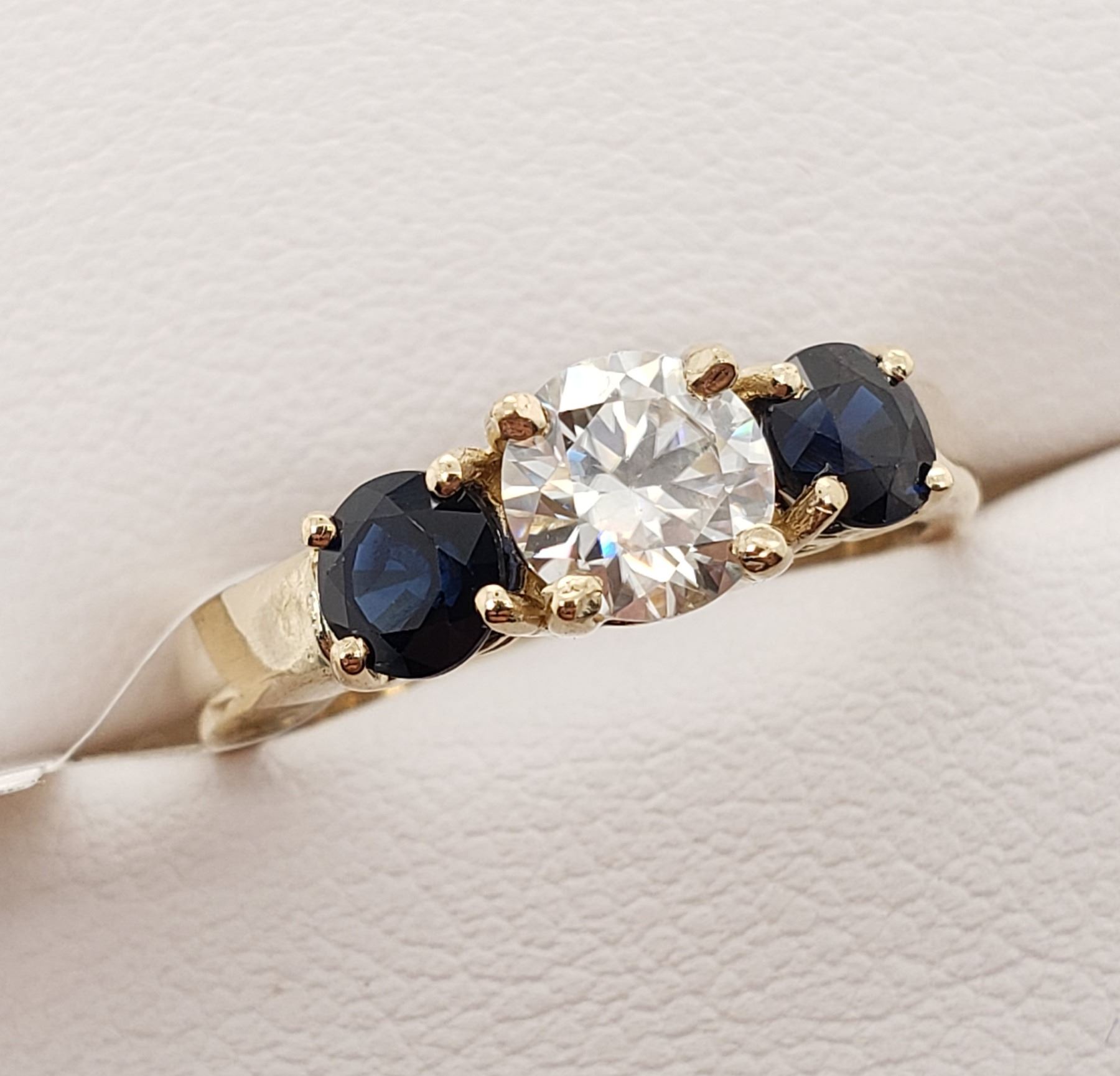 10K YELLOW GOLD MOISSANITE(0.6CT) BLUE SAPPHIRE(0.5CT) RING SIZE 5, WEIGHT 2.82G, MADE IN CANADA **ALL ITEMS MUST BE REMOVED BY 5PM SATURDAY, APRIL 27TH 2024. ALL REMAINING ITEMS WILL BE SUBJECT TO A $6.00 PER DAY STORAGE CHARGE. ANY ITEMS REMAINING AFTER MONDAY, MAY 10TH 2024 WILL BE CONSIDERED FORFEITED. NO REFUNDS WILL BE ISSUED FOR FORFEITED ITEMS. TO SCHEDULE A PICK UP APPOINTMENT CLICK HERE