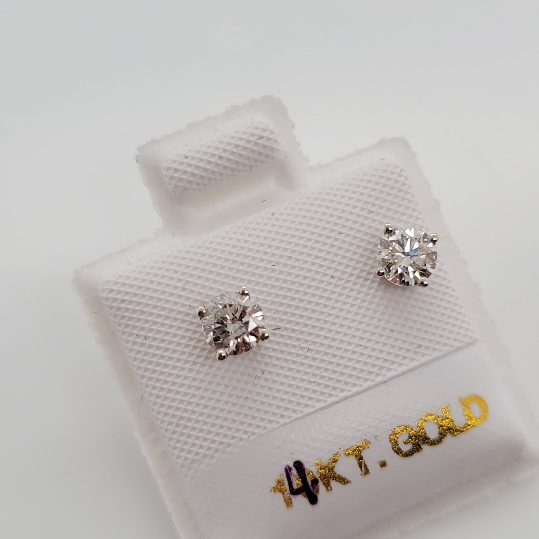 14K WHITE GOLD DIAMOND (0.54CT,I1,FANCY BROWN) EARRINGS (~WEIGHT 0.6G), MADE IN CANADA