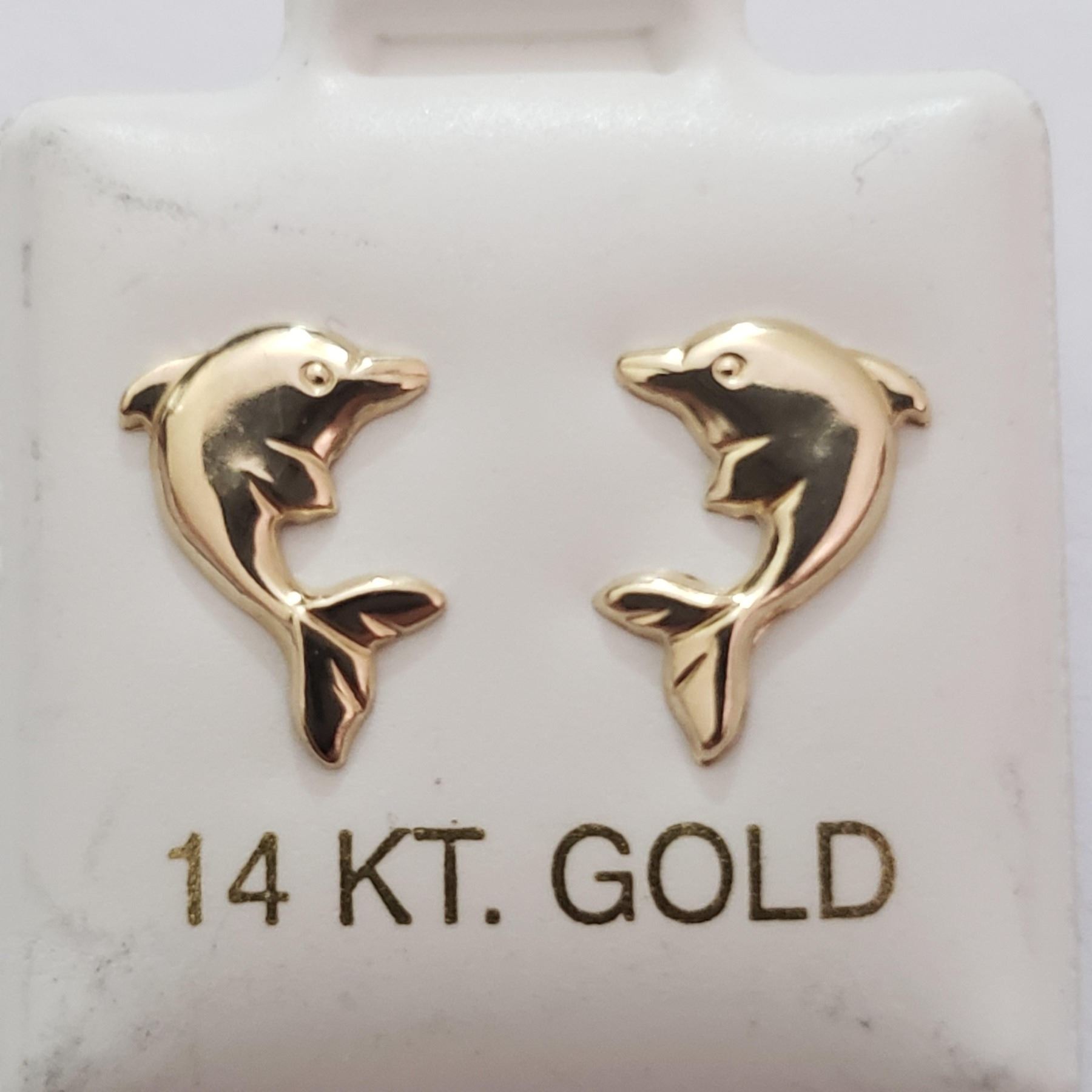 14K YELLOW GOLD DOLPHIN SCREW BACK EARRINGS, SUGGESTED RETAIL VALUE $240