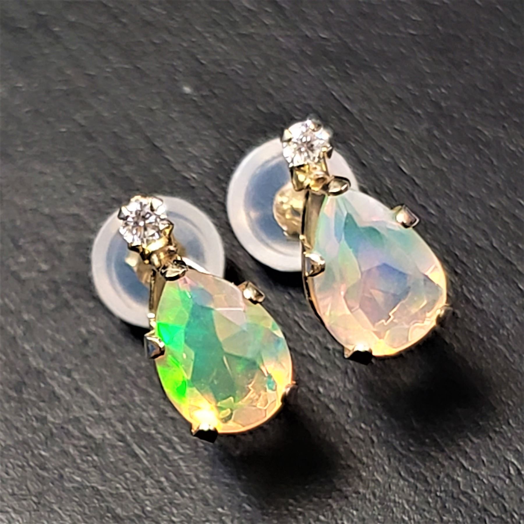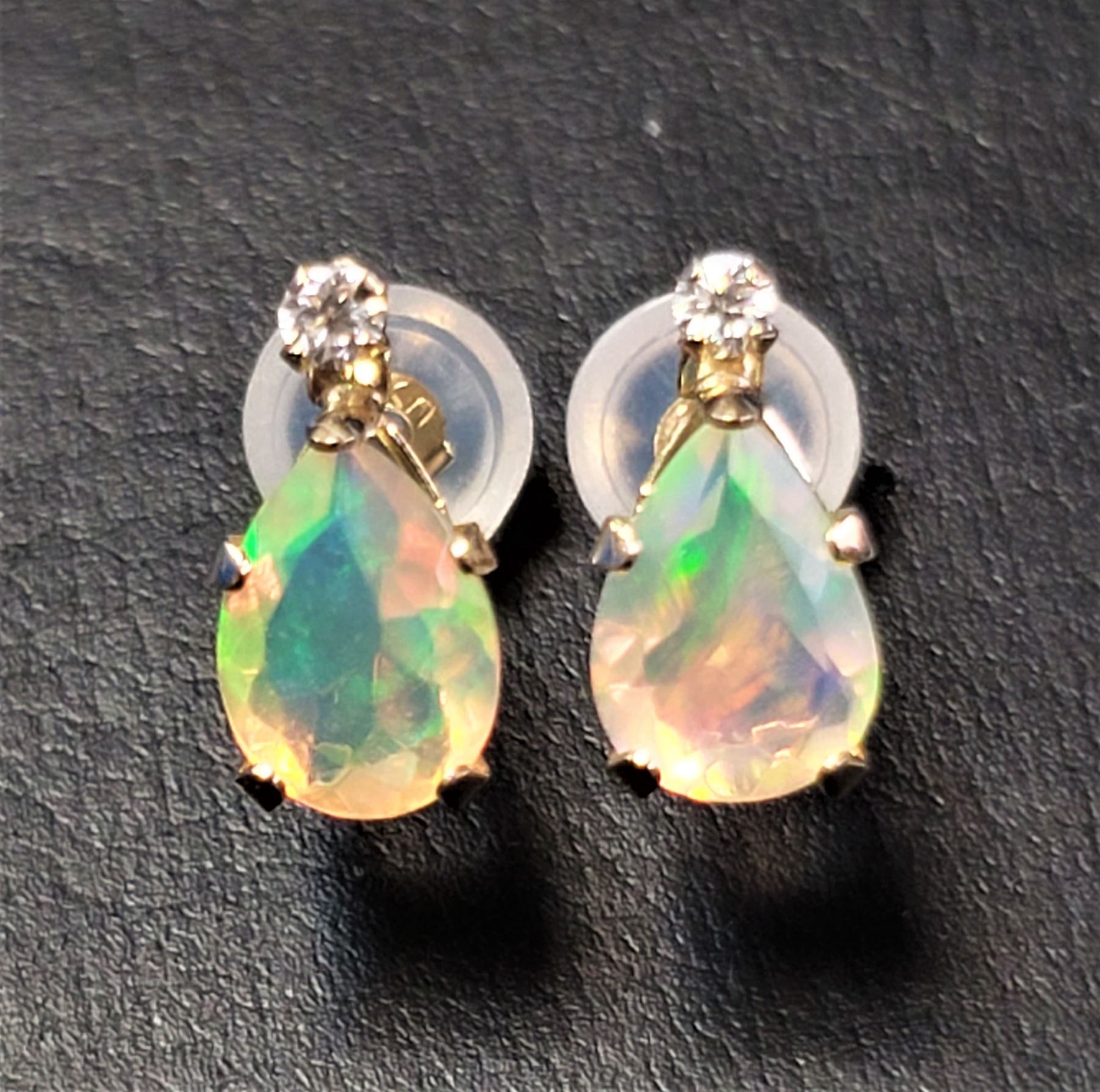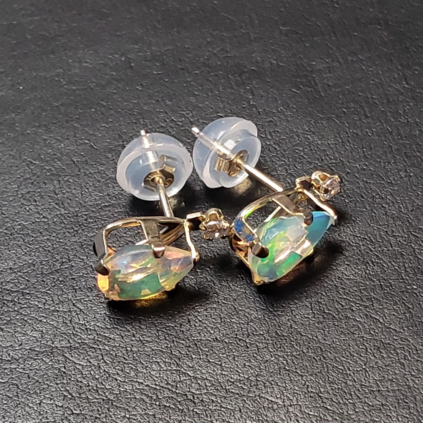 10K YELLOW GOLD OPAL (0.76CT) MOISSANITE (0.05CT) EARRINGS. MADE IN CANADA, SUGGESTED RETAIL VALUE $400