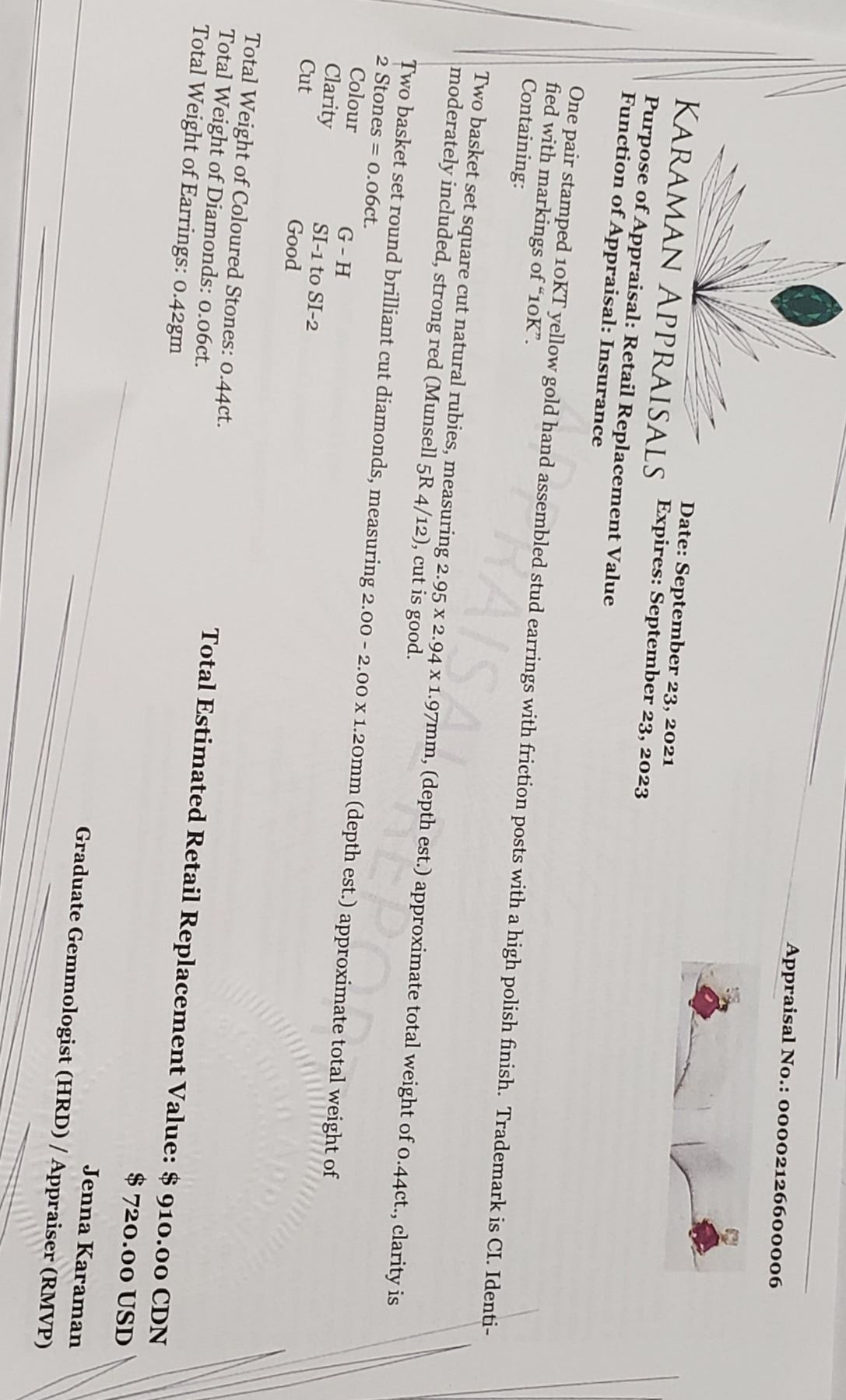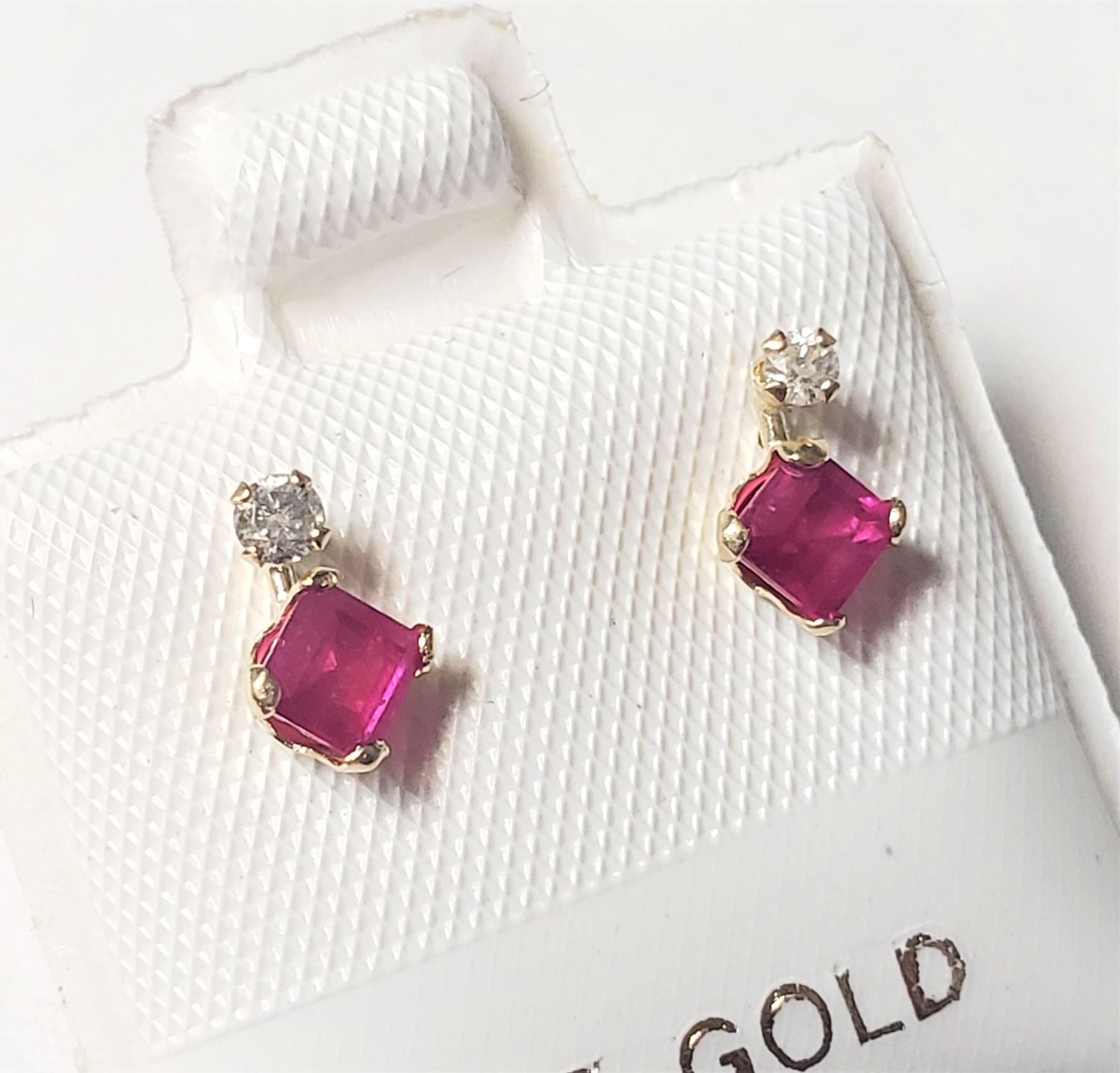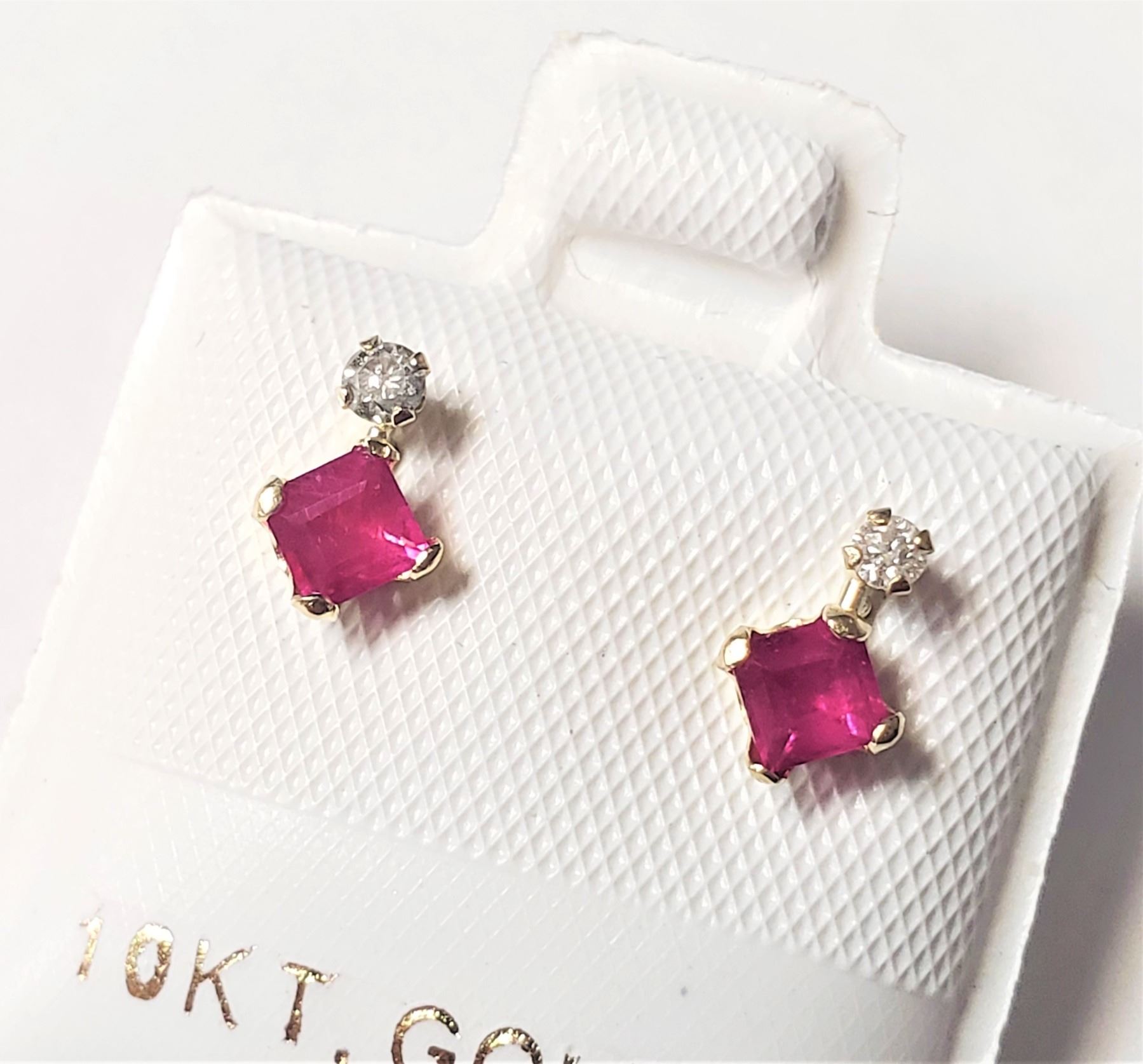 10K YELLOW GOLD RUBY (0.44CT) DIAMOND (0.06CT) EARRINGS. MADE IN CANADA, SUGGESTED RETAIL VALUE $910