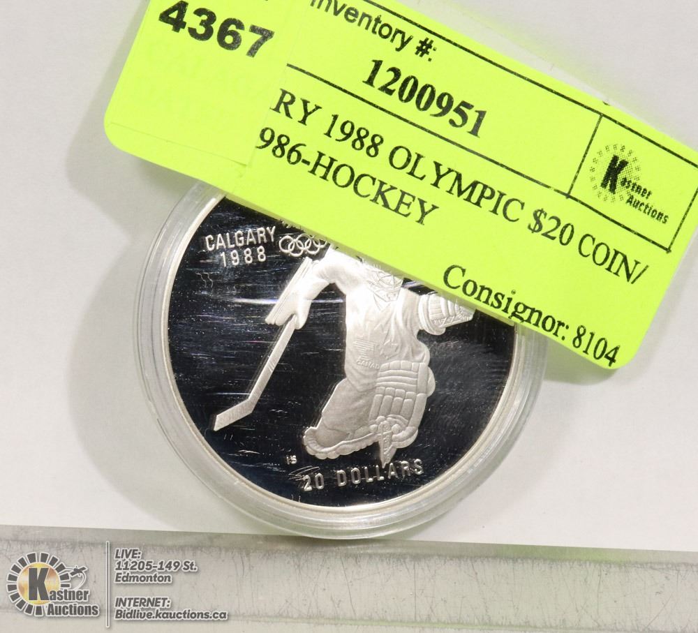 CALGARY 1988 OLYMPIC $20 COIN/ DATED 1986-HOCKEY
