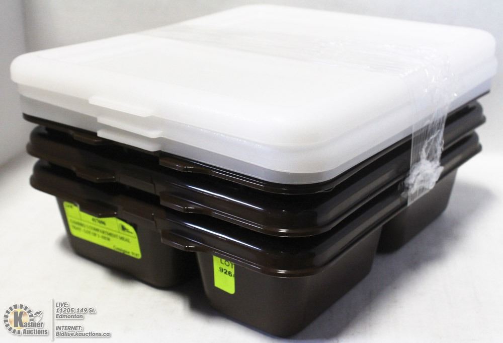 NEW CAMBRO MEAL TRAY WITH LIDS, CAMBRO 9113CP - LOT OF 3
