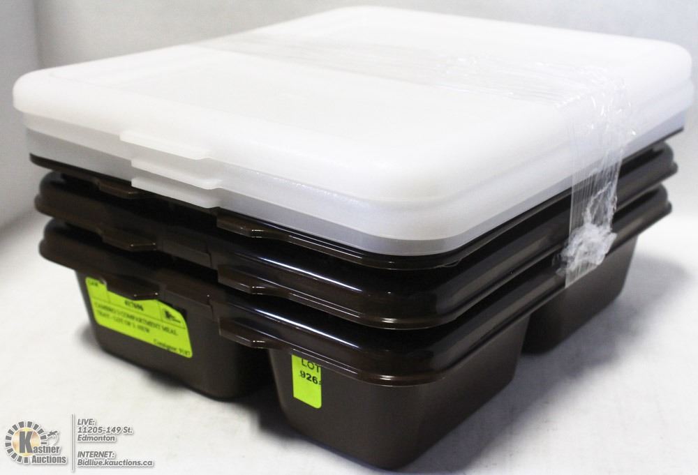 NEW CAMBRO MEAL TRAY WITH LIDS, CAMBRO 9113CP - LOT OF 3