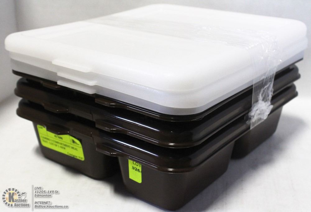 NEW CAMBRO MEAL TRAY WITH LIDS, CAMBRO 9113CP - LOT OF 3