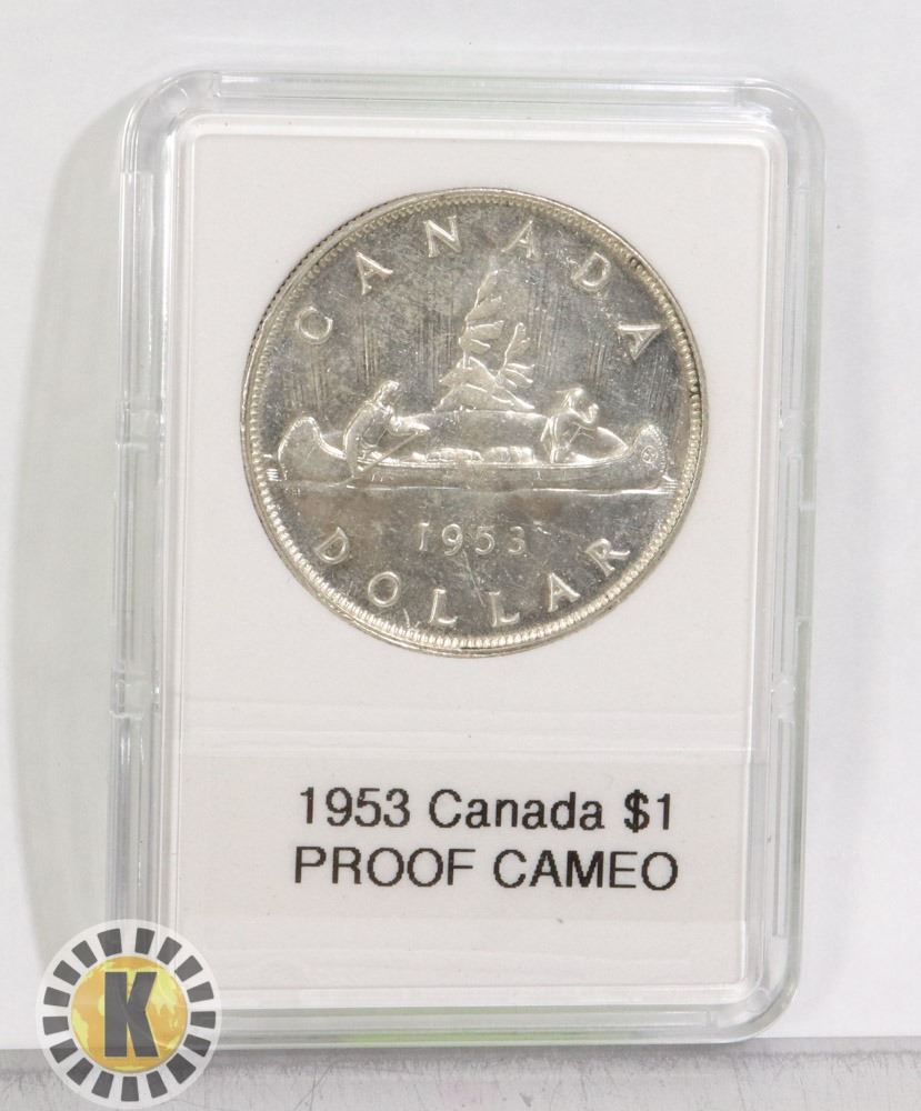 CAN. 1953 SILVER $1, PROOF CAMEO, NSS-WR VERSION
