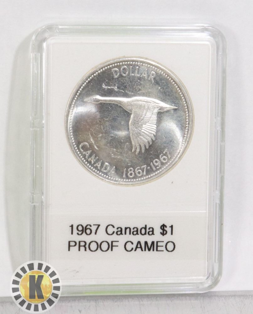 1967 SILVER DOLLAR, PROOF STRUCK WITH CAMEO. EXCELLENT EXAMPLE OF THE YEAR. ***ITEM LOCATED IN LETHBRIDGE AB