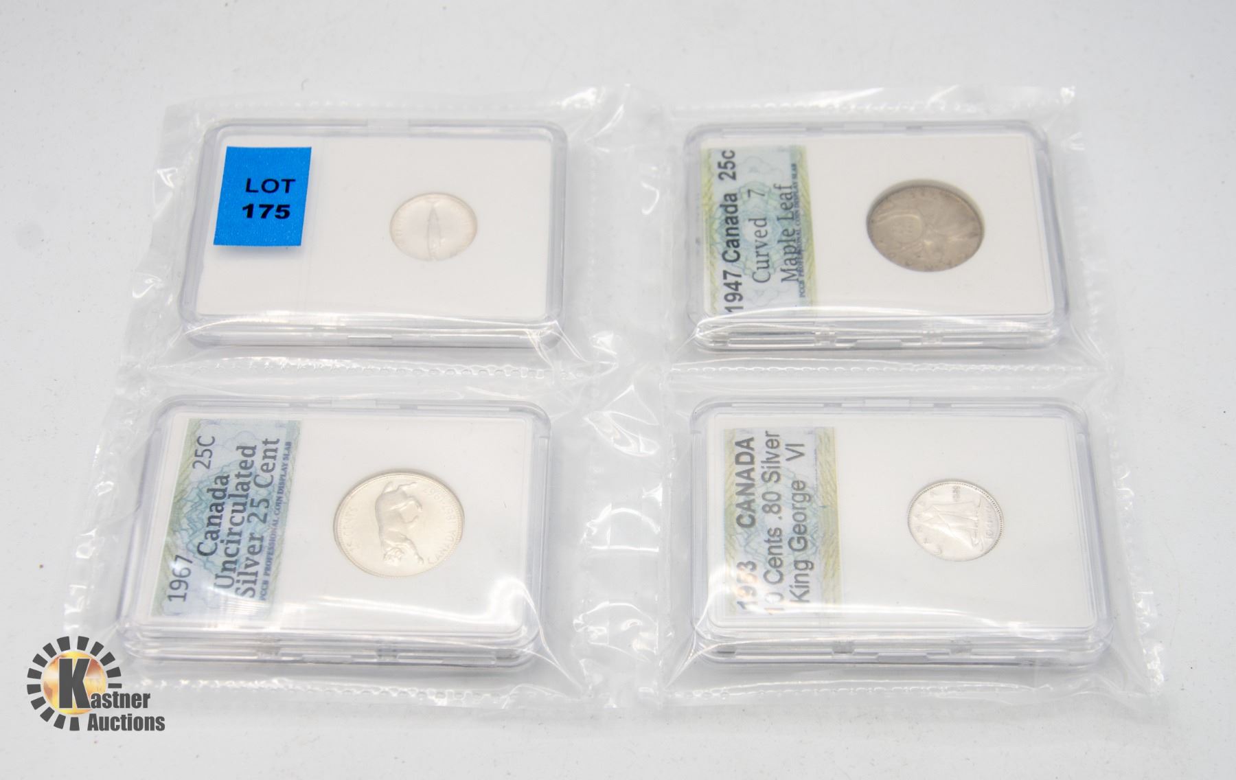 1947 $.25 CURVED 7 MAPLE LEAF, 1953 $.10, 1967 $.25 & $.10 ALL .80% SILVER **ALL ITEMS MUST BE REMOVED BY 5PM SATURDAY, MARCH 23RD 2024. ALL REMAINING ITEMS WILL BE SUBJECT TO A $6.00 PER DAY STORAGE CHARGE. ANY ITEMS REMAINING AFTER MONDAY, APRIL 8TH, 2023 WILL BE CONSIDERED FORFEITED. NO REFUNDS WILL BE ISSUED FOR FORFEITED ITEMS. TO SCHEDULE A PICK UP APPOINTMENT CLICK HERE