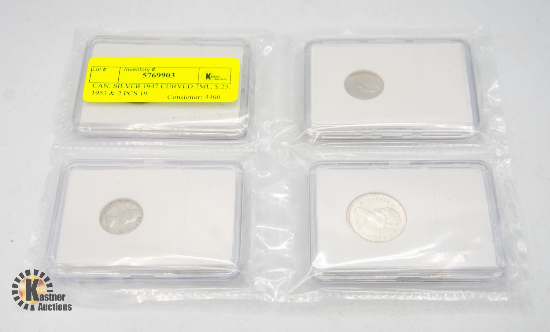 CAN. SILVER 1947 CURVED 7ML, $.25, 1953 & 2 PCS 19