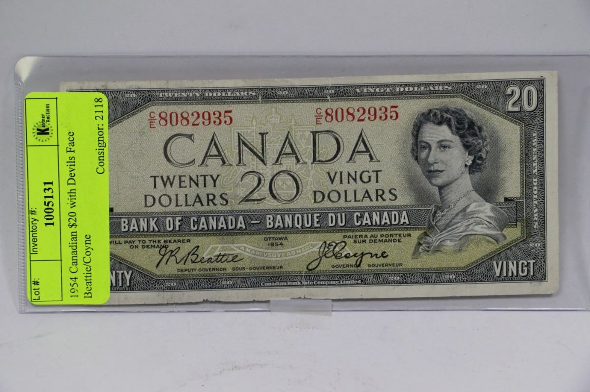 CANADA 1954 20 DOLLAR BANKNOTE - DEVILS FACE