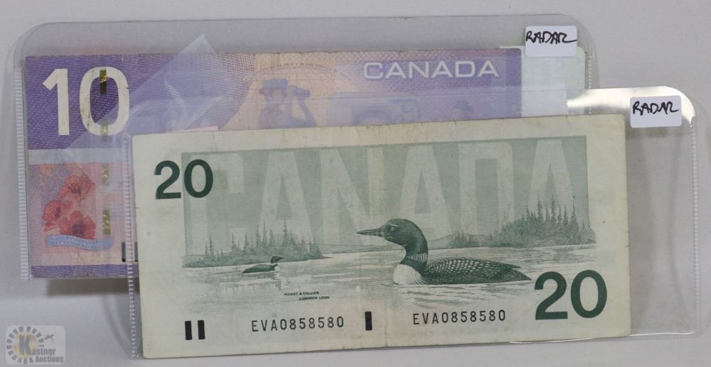 CANADA 2005 AND 1991 10 AND 20 DOLLAR RADAR NOTES