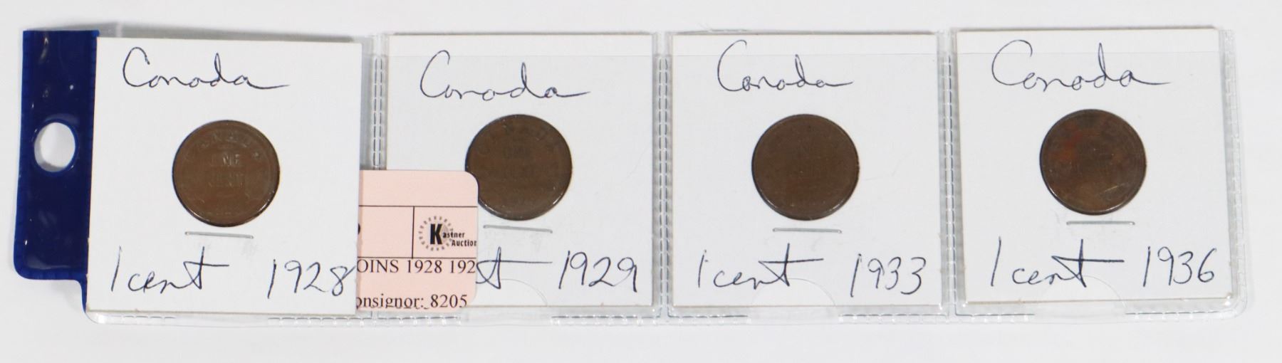 CANADA ONE CENT COINS 1928 1929 1933 1936