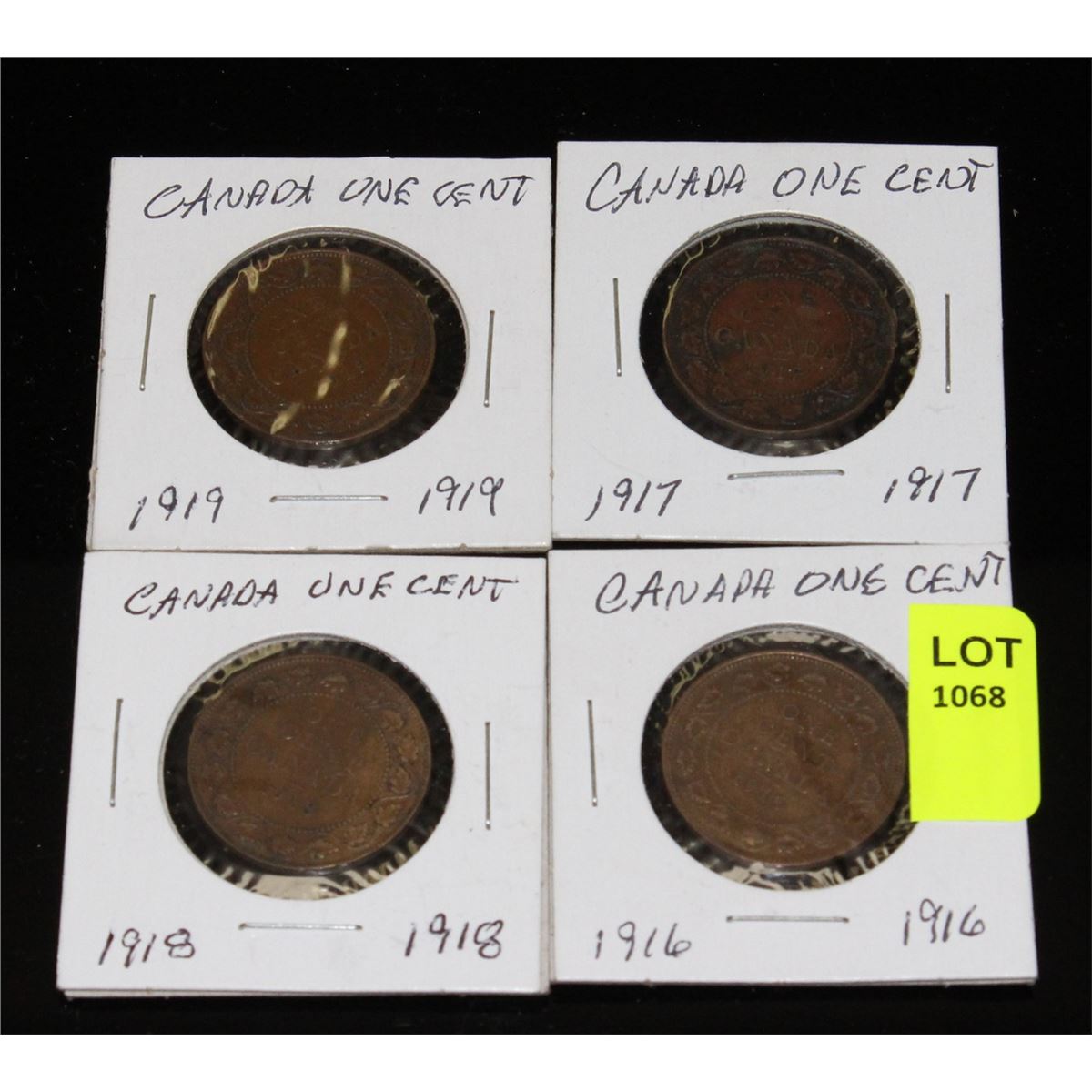 CANADA SET OF 4 LARGE PENNIES-1916,17,18,19