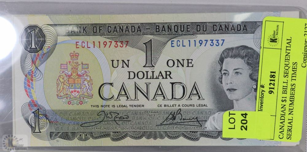 CANADIAN $1 BILL SEQU. SERIAL NUMBERS TIMES X10