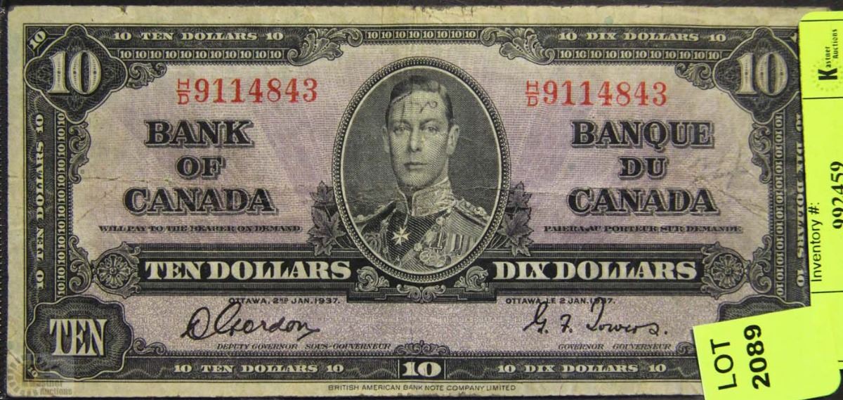 CANADIAN 1937 10 DOLLAR BANKNOTE