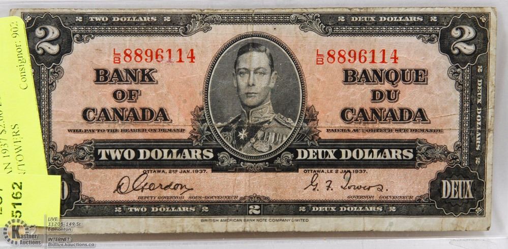 CANADIAN 1937 $2.00 BILL - GORDON/TOWERS