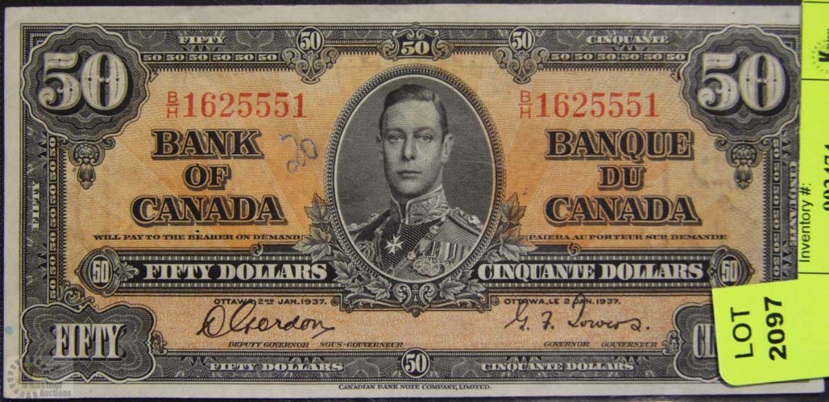 CANADIAN 1937 50 DOLLAR BANKNOTE