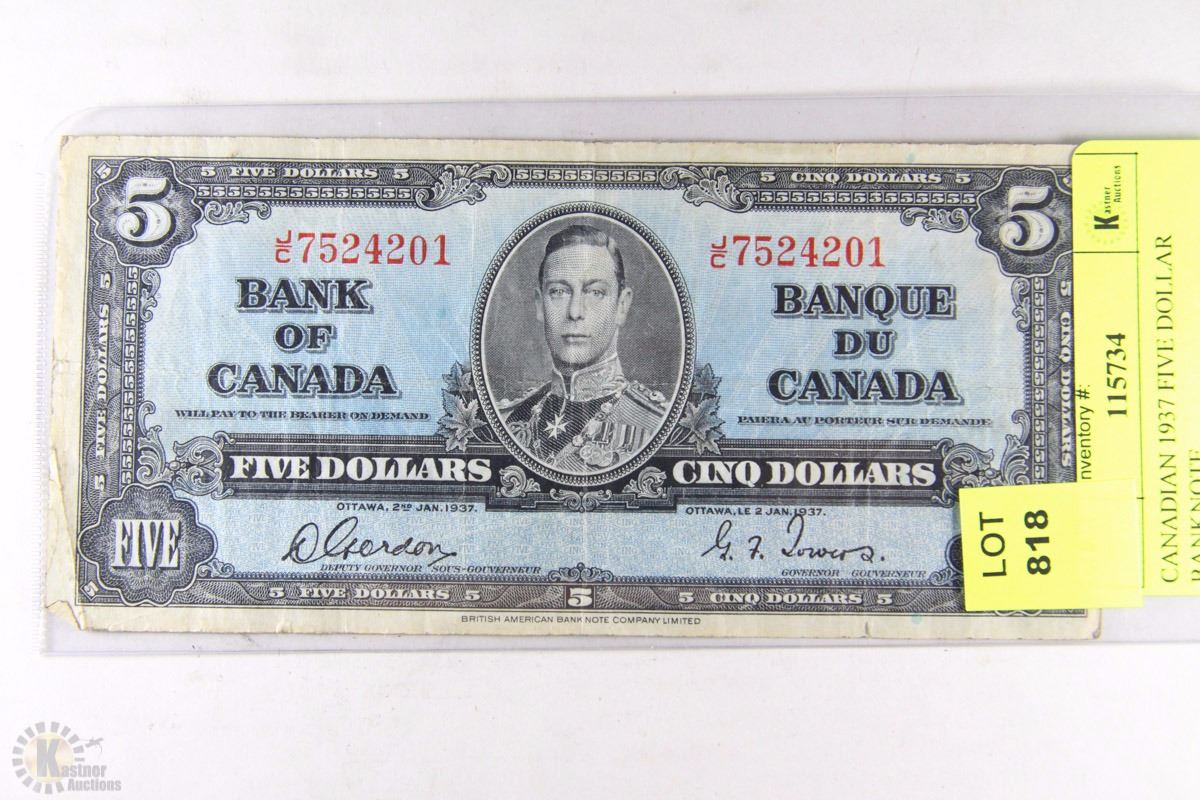 CANADIAN 1937 FIVE DOLLAR BANKNOTE