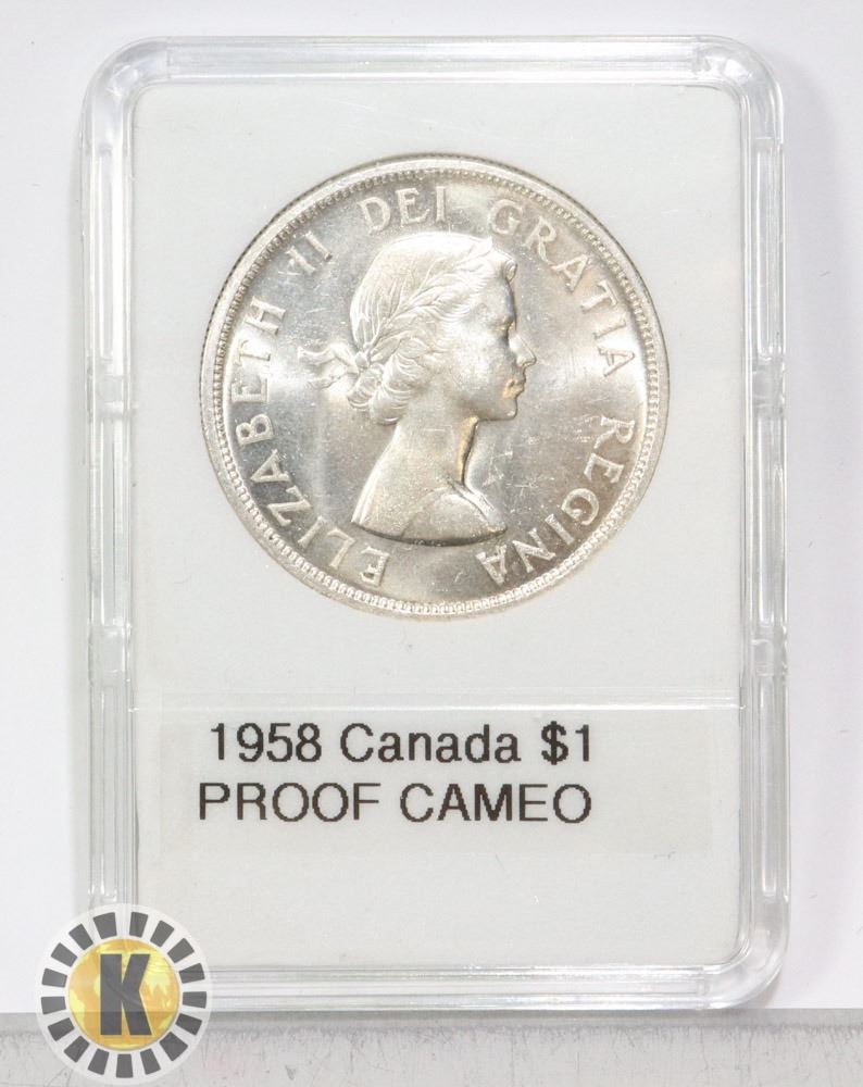 CANADIAN 1958 SILVER $1, PROOF CAMEO "DEATH TOTEM
