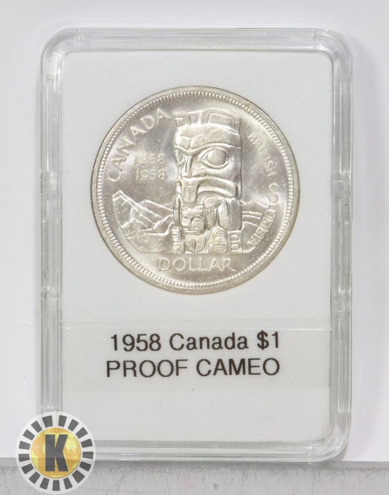 CANADIAN 1958 SILVER $1, PROOF CAMEO  DEATH TOTEM