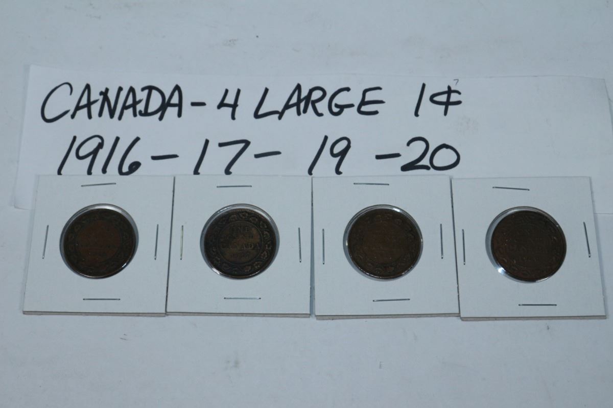 CANADIAN 4 LARGE 1 CENT, 1916-17-19-20
