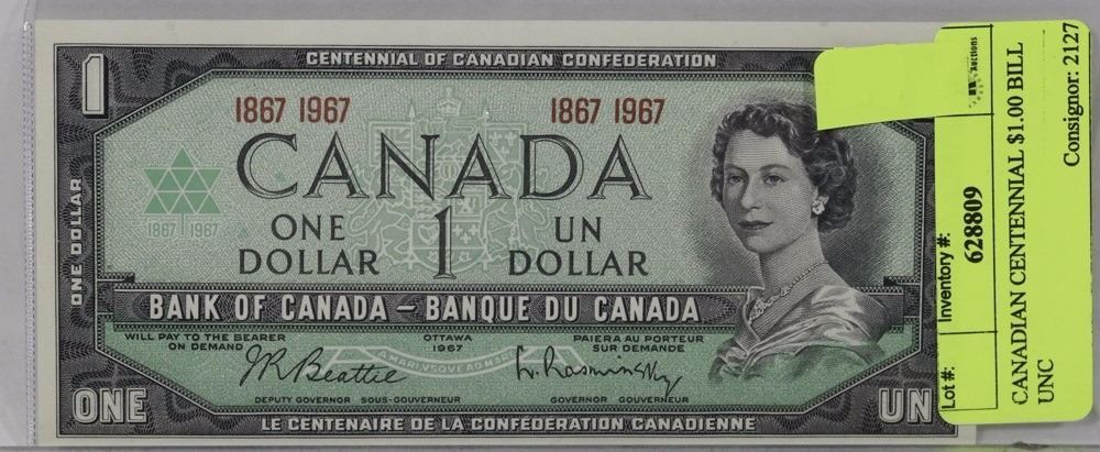 CANADIAN CENTENNIAL $1.00 BILL UNC