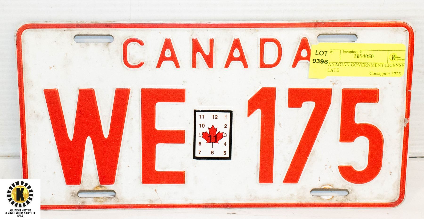 CANADIAN GOVERNMENT LICENSE PLATE