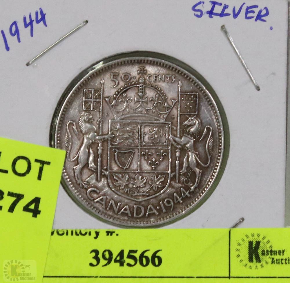CANADIAN HALF DOLLAR COIN 1944 SILVER
