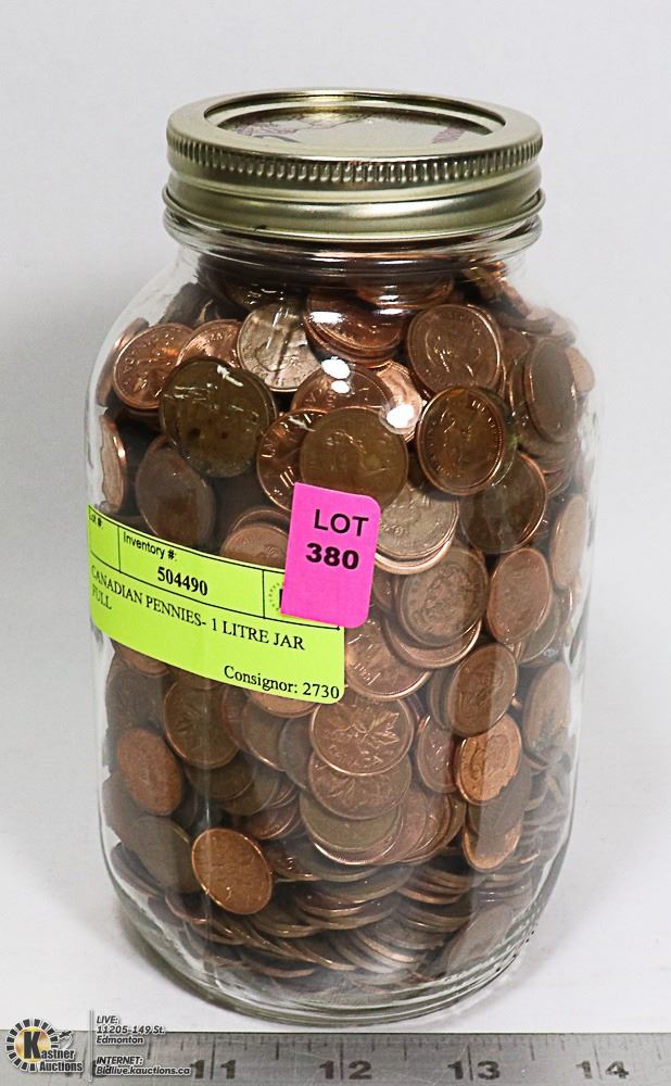 CANADIAN PENNIES- 1 LITRE JAR FULL