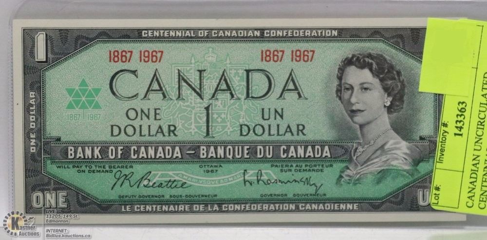 CANADIAN UNCIRCULATED CENTENNIAL $1 DOLLAR BILL