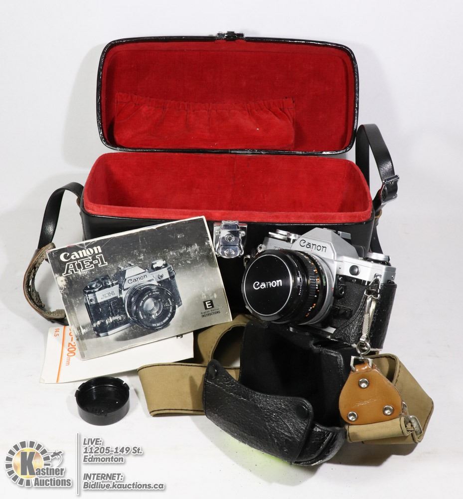 CANON AE-1 SLR 35MM CAMERA, W/ CANON 50MM LENS AND