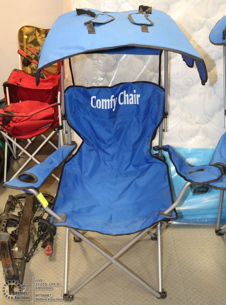 W/ATTACHED SHADE CANOPY - CANOPY FOLDS AROUND CHAIR WITH BACKPACK STYLE CARRY STRAPS - BLUE - SEASONAL
