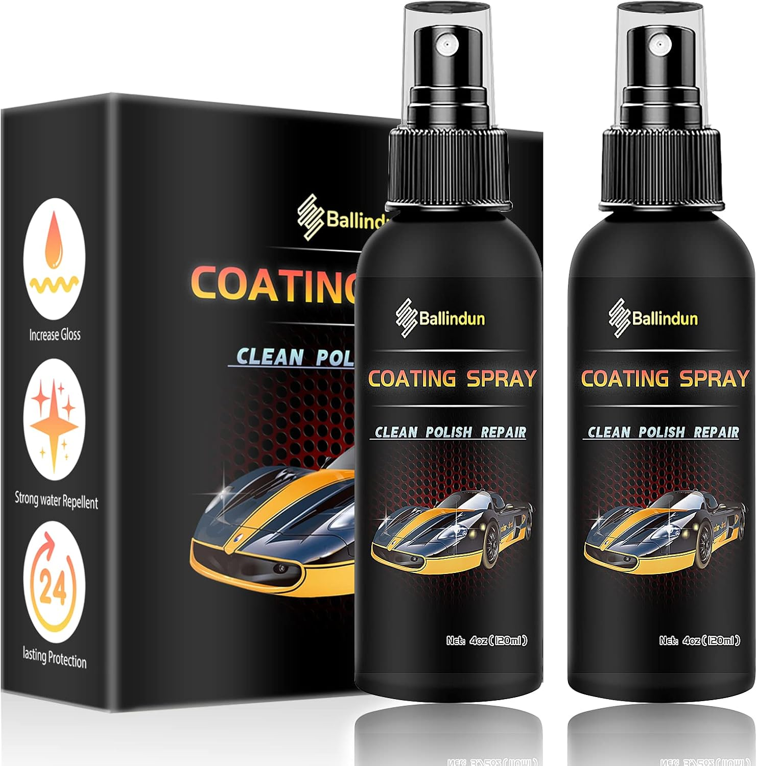 CAR CERAMIC COATING SPRAY, 2 PACK CAR WAX POLISH SPRAY, PROFESSIONAL CAR SCRATCH NANO REPAIR SPRAY POLISH AND POLYMER PAINT SEALANT PROTECTION, FAST CAR DETAILING KIT FINE SCRATCH REPAIR MAXIMUM GLOSS, (NO BOX)