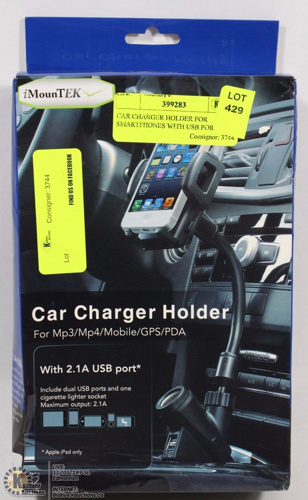 CAR CHARGER HOLDER FOR SMARTPHONES WITH USB PORT