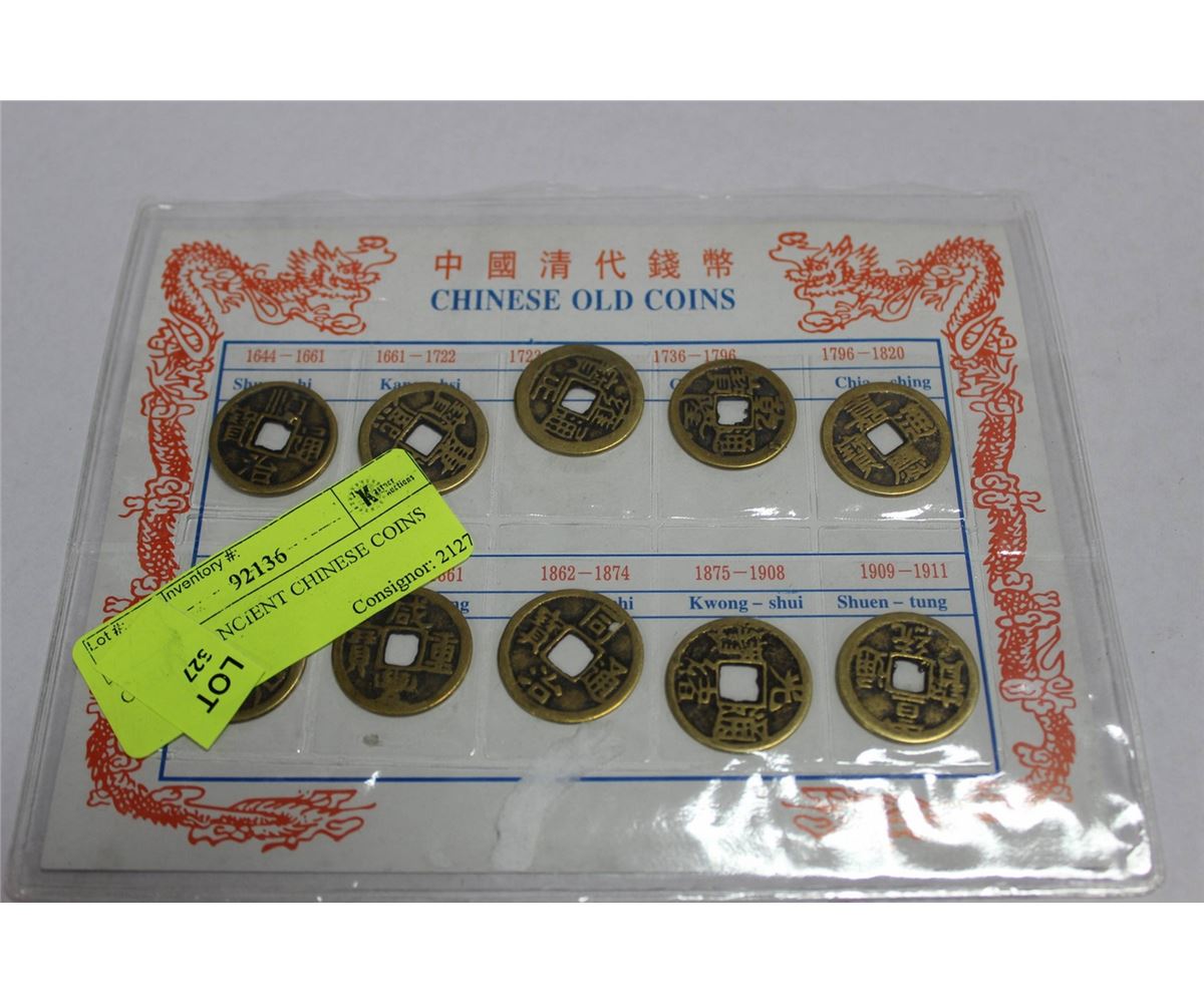 CARD W/ ANCIENT CHINESE COINS