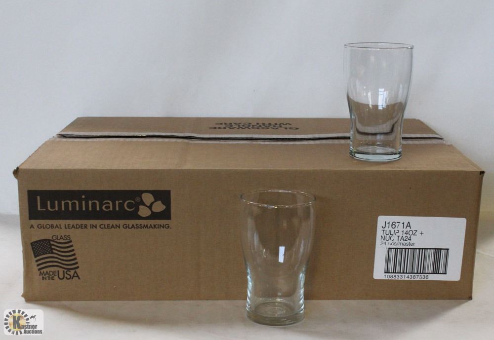 ARC26- NEW, 1 CASE OF 24 ARC CARDINAL J1671 TULIP BEER GLASS, 14 OZ, 5-1/4", MADE IN USA.