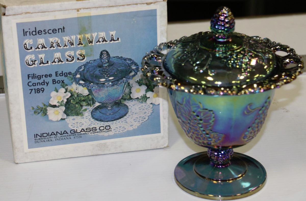 CARNIVAL GLASS FILIGREE EDGE CANDY BOX IN BOX