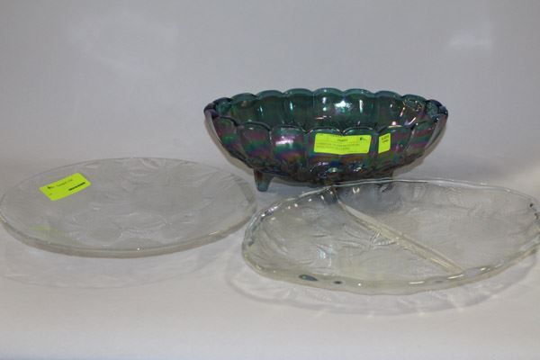 CARNIVAL GLASS FRUIT BOWL WITH 2 ROSE PLATTERS