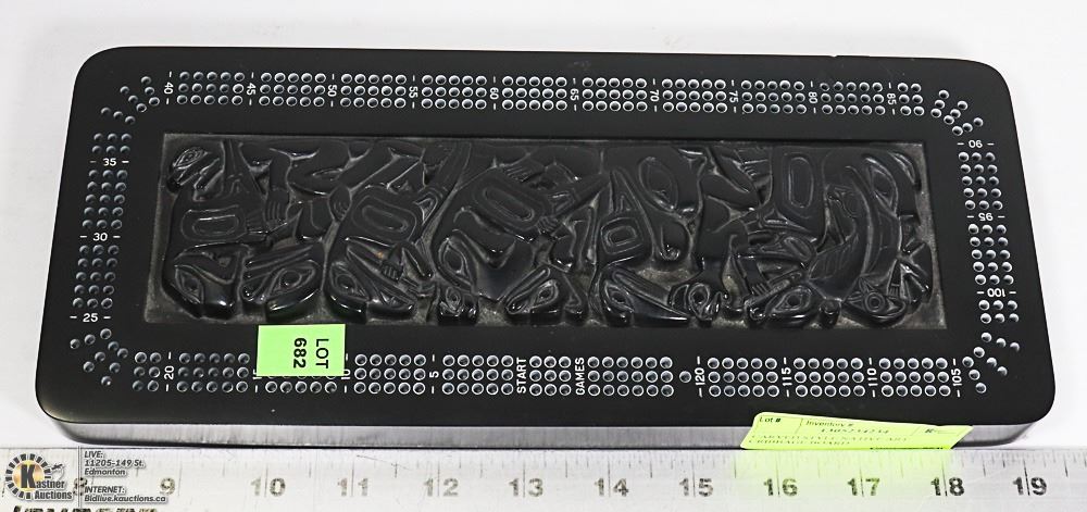CARVED STYLE NATIVE ART CRIBBAGE BOARD
