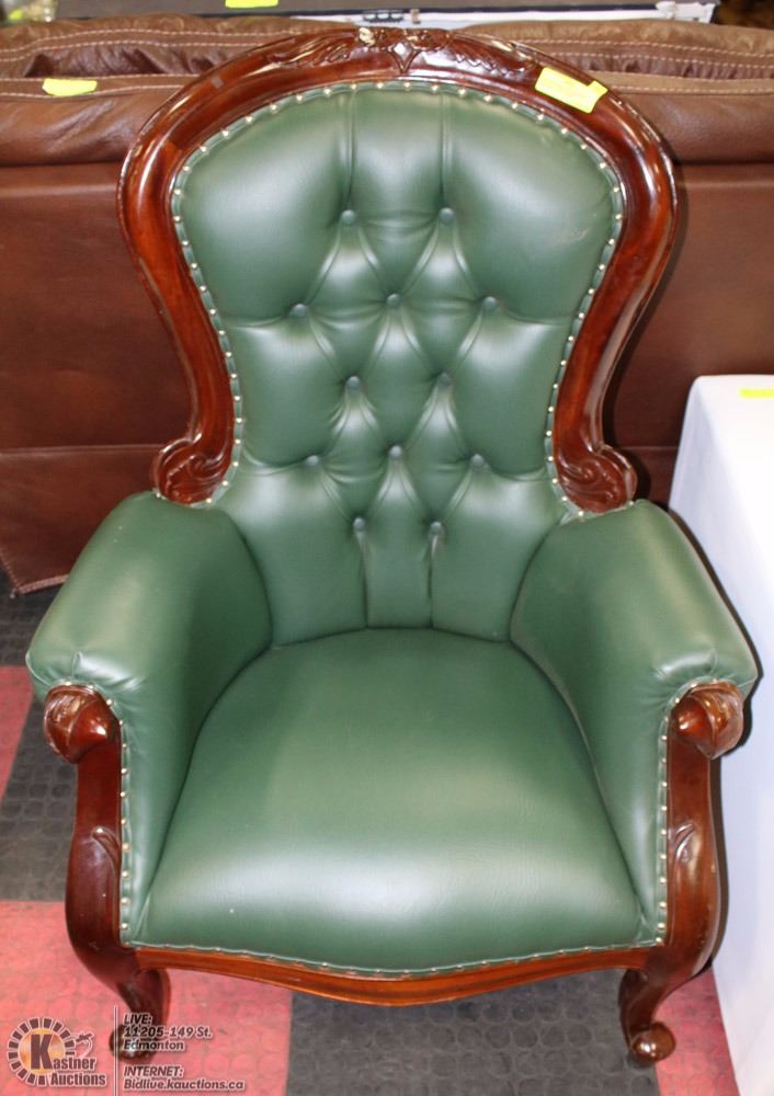 CARVED WOOD AND LEATHER NAILHEAD SIDE CHAIR