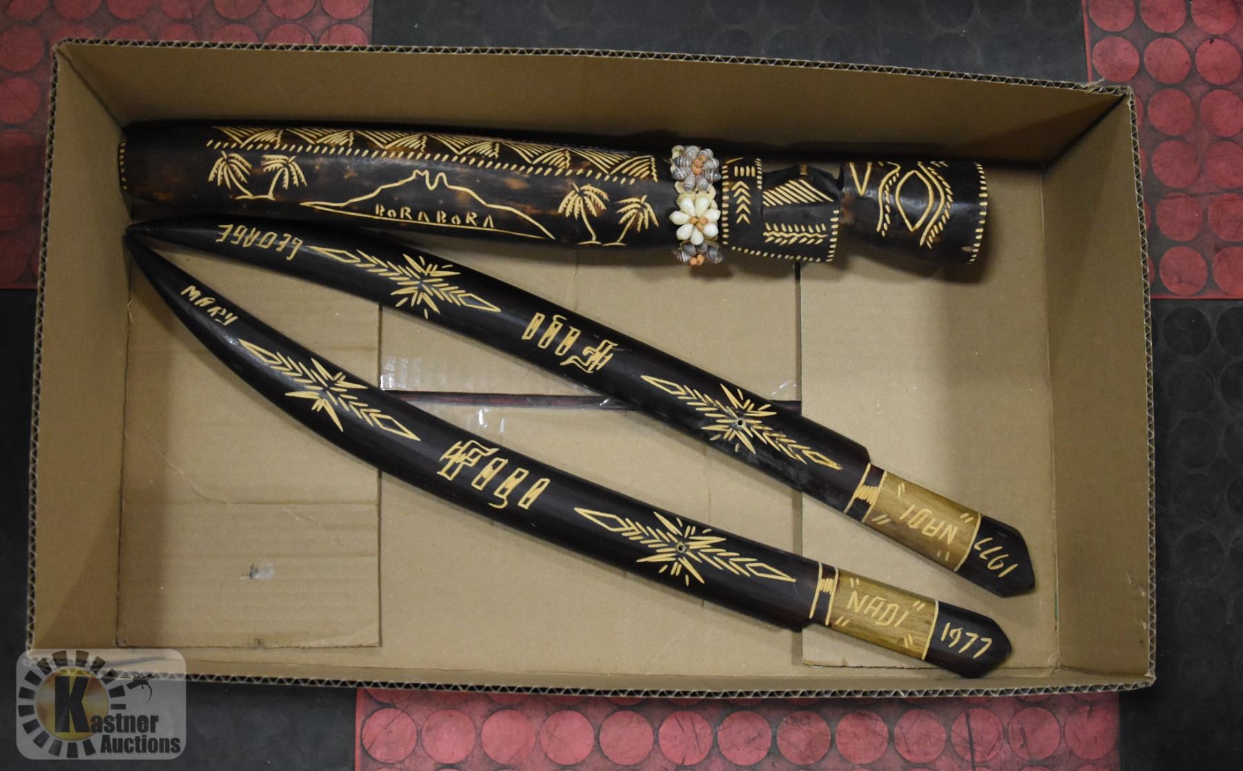 CARVED WOOD SWORDS & FIGURINE - BORA BORA