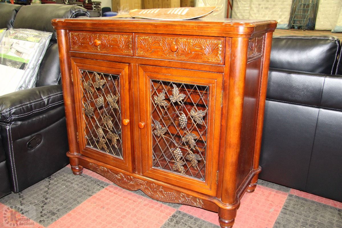 CARVED WOODEN WINE STORAGE CABINET-46"X19"X39"H